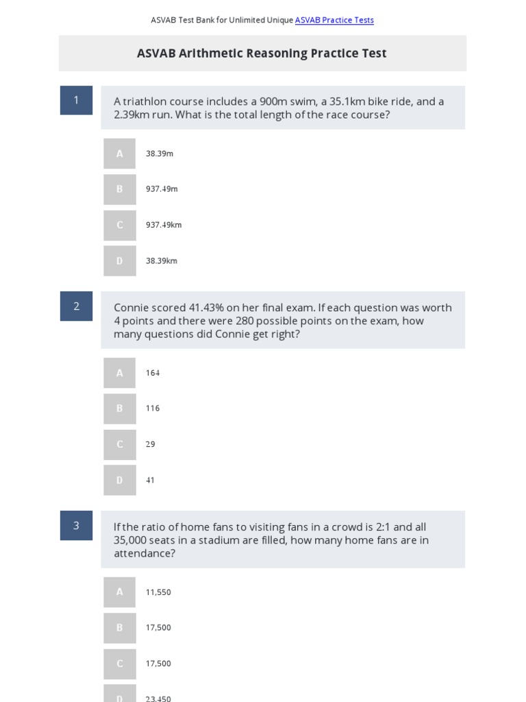 Asvab Arithmetic Reasoning Practice Test